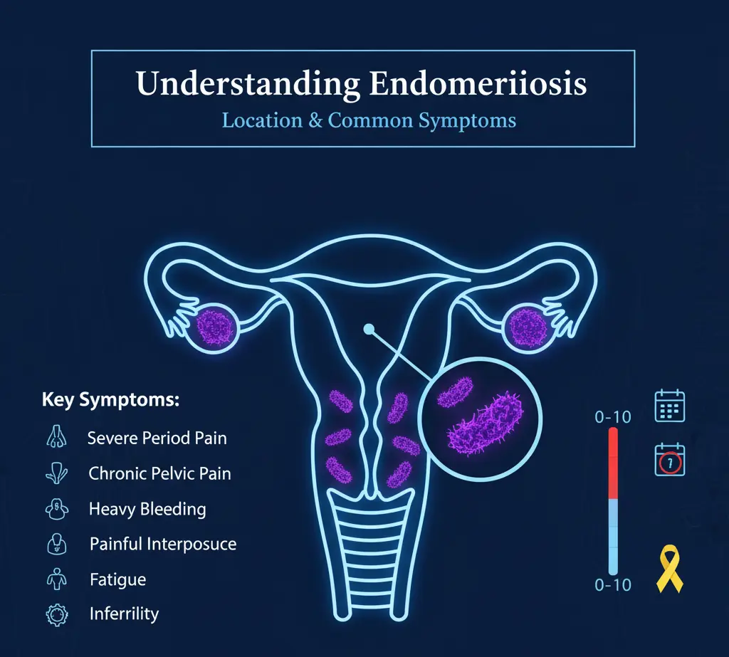 Many women suffer silently with endometriosis for years before getting help. What starts as severe period cramps or pelvic pain can become a constant burden on daily life and mental health. Endometriosis is a chronic condition in which tissue similar to the uterine lining grows outside the uterus. It often causes debilitating pain, heavy bleeding, fatigue, and infertility, affecting roughly 1 in 10 women of reproductive age. Without a cure, persistent pain can lead to long-term physical and emotional complications that severely reduce quality of life. In other words, living years with undiagnosed endometriosis means enduring needless suffering.